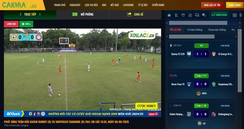 - Tìm trận đấu theo thẻ Live, BLV Cakhia hoặc tìm kiếm
