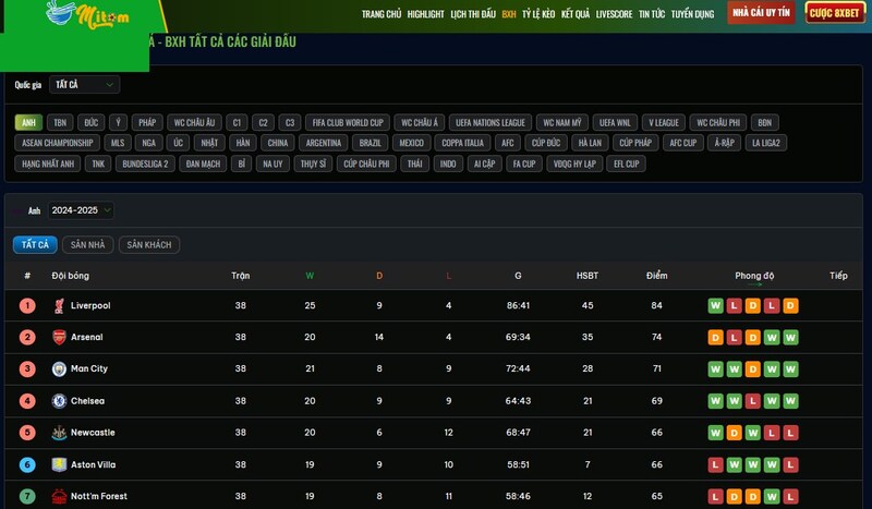 Khi anh em đã là một “tín đồ sân cỏ”, bóng đá không chỉ đơn thuần là 90 phút dán mắt vào màn hình. Nó là cả một thế giới sôi động với nhịp đập liên tục: trận đấu, bảng điểm, hiệu số, cuộc đua top 4, cuộc chiến trụ hạng, kịch tính hơn cả một bộ phim bom tấn. Và trong khi nhiều nền tảng chỉ dừng lại ở việc trực tiếp trận đấu, thì Mitom TV lại vươn mình như một “trung tâm bóng đá số” toàn diện, nơi bạn vừa xem được mọi trận cầu đỉnh, vừa cập nhật bảng xếp hạng theo thời gian thực, đặc biệt là bảng xếp hạng bóng đá Ngoại hạng Anh – giải đấu hấp dẫn bậc nhất hành tinh.