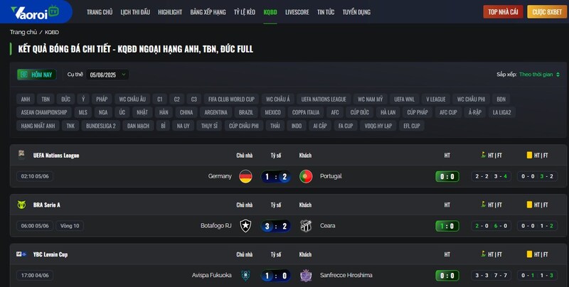 - Kết quả và Highlight: Bạn lỡ trận đấu? Đừng lo! Tại đây, bạn có thể tra cứu kết quả chi tiết từng trận và thưởng thức lại các pha bóng nổi bật qua video highlight chất lượng cao.
